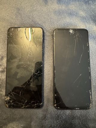 Pack de 2 teléfonos Xiaomi Redmi Note 10. La pantalla está rota y no encienden. Uno de ellos se enciende pero con lineas de colores como se ve en las fotos.