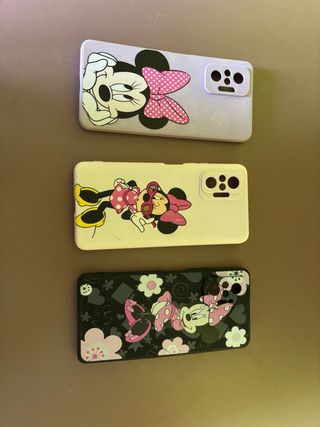 Conjunto de tres fundas para Xiaomi Redmi Note 10 Pro con diseños de Minnie Mouse. - Funda morada con Minnie de perfil y lazo rosa. - Funda blanca con Minnie y Daisy juntas. - Funda negra con estampado floral y Minnie.