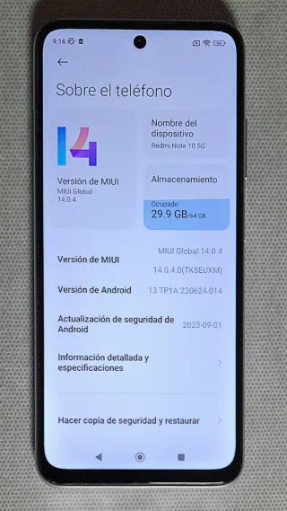 Teléfono móvil Xiaomi Redmi Note 10 5G con 128GB de almacenamiento.regalo auriculares inalámbrico y un cristal templado puesta. - Modelo: Redmi Note 10 5G - Capacidad: 128 GB - Versión MIUI: Global 14.0.4 - Versión Android: 13 - Actualización de seguridad: 2023-09-01