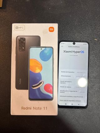 Teléfono móvil Xiaomi Redmi Note 11 en color negro. - Pantalla AMOLED. - Cámara principal de 50 MP. - Batería de 5000 mAh. Vendo Xiaomi Redmi Note 11 en su caja original, un móvil que destaca sobre todo por su gran batería y una pantalla con colores muy vivos, ideal si buscas un primer dispositivo para un hijo o un teléfono fiable para el día a día. Es la versión de 128GB, así que vas a tener espacio de sobra para fotos y aplicaciones sin preocuparte por el almacenamiento. El teléfono funciona de maravilla, aunque tiene un detalle estético: una pequeña rotura en la parte trasera que es meramente visual y no influye para nada en