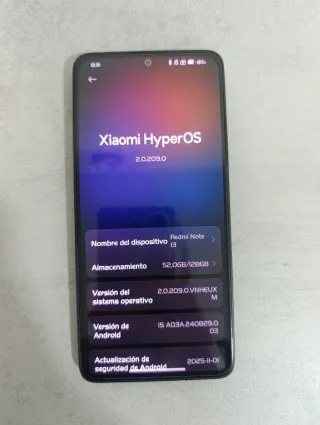 Teléfono móvil Xiaomi Redmi Note 13 con 128GB de almacenamiento. - Versión del sistema operativo: 2.0.209.0.VNHEUX M - Versión de Android: 15 AQ3A.240829.0 03 - Actualización de seguridad de Android: 2025-11-01