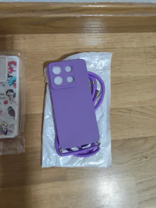 Conjunto de cuatro fundas para Xiaomi Redmi Note 13 Pro. - Funda morada con cordón. - Funda con diseño de princesas Disney. - Funda con diseño de flores. - Funda con diseño de ositos.
