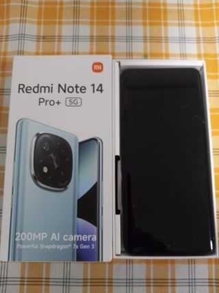 Teléfono móvil Xiaomi Redmi Note 15 Pro+ 5G. Lo he abierto por que me lo pensaba quedar, pero es muy grande para mi gusto. Movil sin estrenar - Batería de 6500mAh con carga HyperCharge de 100W. - Cámara principal de 200MP. - Incluye funda protectora negra. - Cable de carga USB-C.