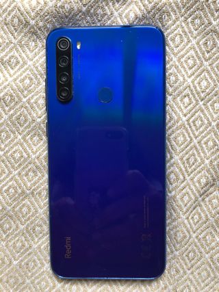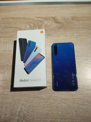 Teléfono móvil Xiami Redmi Note8 T color azul iridiscente con su carcasa protectora y manual instrucciones. 64gb almacenamiento y 4gb ram. Libre