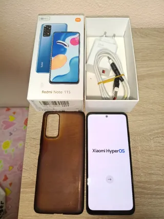 Teléfono móvil Xiaomi Redmi Note 11S en color gris grafito. Incluye caja, cargador cable y funda. - Cargador de 33W. - Funda protectora de color marrón.