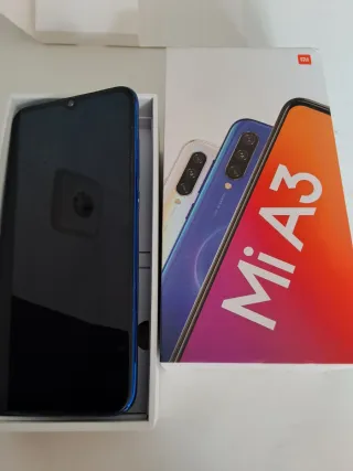 Xiaomi MI A3 128GBmuy cuidado ,pantalla siempre con protector en su caja con cable y cargador - Android One, AMOLED de 6,088" (Cámara Frontal de 32 MP, Trasera de 48 + 8 + 2 MP,bateria 4030 mAh, Jack de 3,5 mm, Qualcomm Snapdragon 665 2,0 GHz, 4 + 64 GB) Color Azulón, 4gb memoria - Pantalla con notch. - Triple cámara trasera.