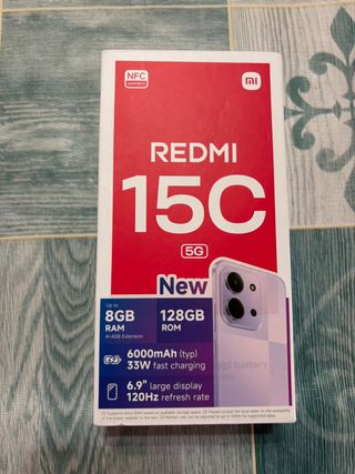 Teléfono móvil Xiaomi Redmi 15C 5G con gran capacidad de memoria. - 8GB de RAM - Batería de 6000mAh (typ) con carga rápida de 33W. - Pantalla grande de 6.9 con tasa de refresco de 120Hz. - Soporte NFC. Envío en menos de 24horas