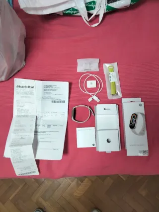 Smartband Xiaomi modelo Smart Band 8. Funciona perfectamente Las dos pulseras están usadas y la beige con marcas, sé ve en la foto, pero puedes comprar nuevas super baratas, ya sea en MediaMark o AliExpress DOY con factura de MediaMarkt de Junio de 2024, le queda aún algo más de un año de garantía Smartwatch