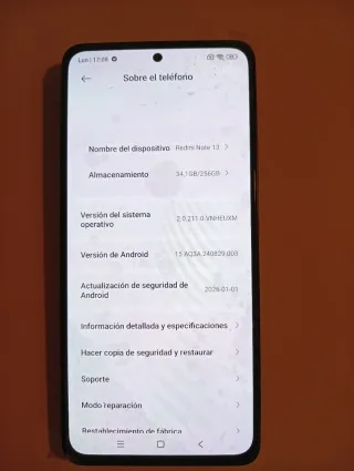 Teléfono móvil Xiaomi Redmi 15 con 256GB de almacenamiento. - Modelo: Redmi 15 - Capacidad: 256GB - Sistema operativo: Xiaomi HyperOS 2.0.205.0 - Versión de Android: 15 AQ3A 250226.002 - Actualización de seguridad de Android: 2025-11-01