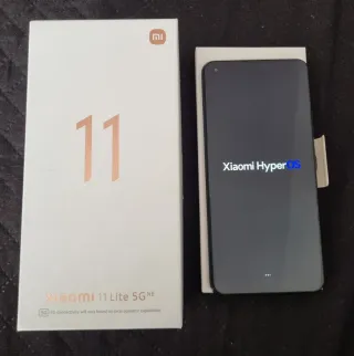 Teléfono móvil Xiaomi 11 Lite 5G NE con 128GB de almacenamiento. El dispositivo muestra el logo de Xiaomi HyperOS en pantalla. - Diseño ligero y delgado. - Conectividad 5G.