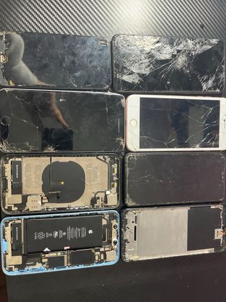 Lote de 8 teléfonos móviles para piezas o reparación. Incluye diversas marcas y colores. - Teléfonos para repuestos. - Ideal para técnicos o aficionados a la reparación. - Variedad de modelos y marcas.