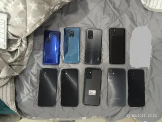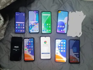Se vende lote de 9 teléfonos móviles de diferentes marcas. - Incluye modelos de Oppo, Redmi, Samsung y Xiaomi. - Variedad de colores: negro, azul y gris.