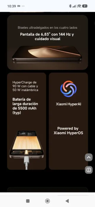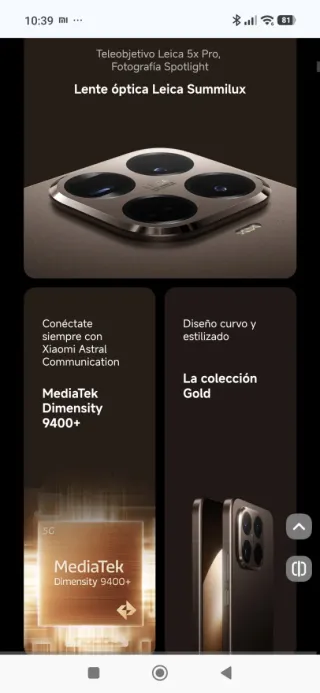 Teléfono móvil Xiaomi 15T Pro en color dorado y con 256GB de almacenamiento. - Lente óptica Leica Summilux. - Teleobjetivo Leica 5x Pro, Fotografía Spotlight. - MediaTek Dimensity 9400+. - Diseño curvo y estilizado. - Conexión Xiaomi Astral Communication. No tiene apenas uso. Lo compré en la tienda oficial en octubre y dispone de todas sus garantías. También regalaría un protector de pantalla puesto y fundas sin estrenar. Más información o envío fotos a interesados. Vendo por cambio a uno nuevo porque me gustan más pequeños.