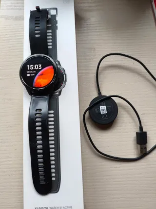 Reloj inteligente Xiaomi Watch S1 Active en color negro. - Diseño deportivo y moderno. - Correa de silicona cómoda. - Pantalla circular. - Cargador magnético incluido. Tiene ya varios años de uso, y a la correa le falta la gomita por lo cual recomiendo cambiarla. Sin embargo el resto está en perfecto estado.