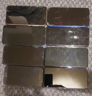 Lote de teléfonos móviles para piezas o reparación. Se venden tal como se ven en las imágenes. - Varios modelos y marcas. - Pantallas con roturas o daños. - Ideales para técnicos o aficionados a la reparación.