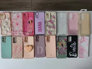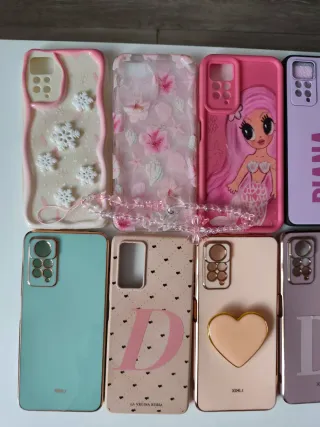 Pack de 12 carcasas para Redmi Note 11 Pro 5G con diversos diseños. Pack completo 20 euros. Carcasas sueltas, 2 euros. - Carcasa transparente con purpurina rosa. - Carcasa transparente con purpurina dorada. - Carcasa transparente. - Carcasa transparente con diseño de Hello Kitty. - Carcasa morada con texto DIANA. - Carcasa rosa con dibujo de sirena. - Carcasa transparente con flores rosas. - Carcasa beige con adornos de copos de nieve. - Carcasa rosa con letra D y corazones. - Carcasa rosa con letra D y pequeños corazones. - Carcasa rosa con forma de corazón. - Carcasa con diseño de Barbie.