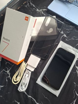 Teléfono móvil Xiaomi Redmi 7 en color negro. Incluye accesorios. - Caja original. - Funda protectora transparente. - Cargador. - Auriculares. - Cable USB.