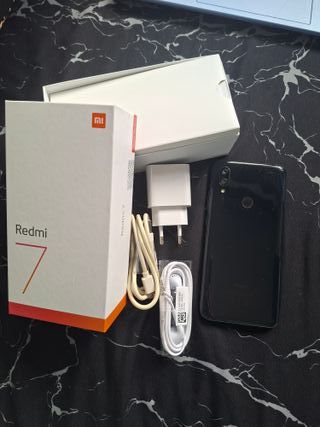Teléfono móvil Xiaomi Redmi 7 en su caja original, listo para estrenar. - Incluye cargador. - Incluye auriculares. - Caja original.