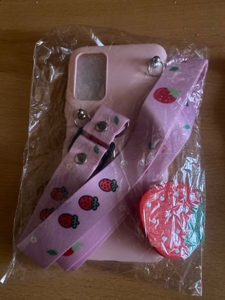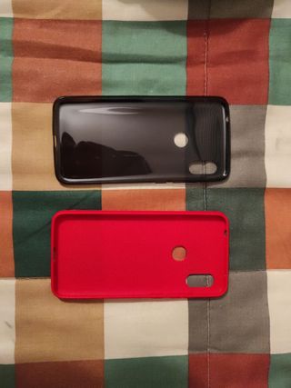 Vendo dos fundas para móvil. Una es negra para Xiaomi K20, con un anillo en la parte trasera. La otra es rosa, con estampado de fresas y una correa. Ambas fundas parecen estar en buen estado. 5€ por cada una