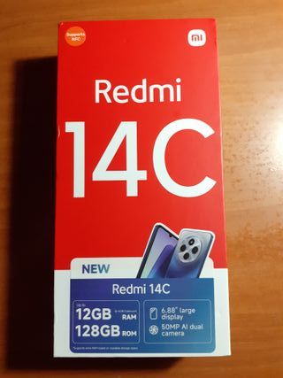 Está en su caja sin abrir (con precintos visibles en foto). Teléfono móvil Xiaomi Redmi 14C: - Almacenamiento: 128 GB - Ram 6 GB (posibilidad de ampliar a 12 GB) - Pantalla de 6.88" - Cámara dual trasera de 50 MP - Cámara frontal de 13 GB - Conectividad NFC