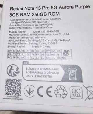 Teléfono móvil Xiaomi Redmi Note 13 Pro 5G en caja. - Usado una semana. Esta nuevo. - Color Aurora Purple. - Incluye funda protectora y protector pantalla de solicitada. - Cargador rápido de 67W. - Cable de carga.