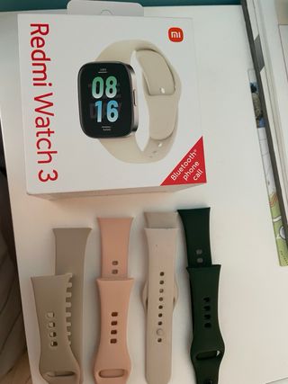 Smartwatch Redmi Watch 3. Comprado en febrero de 2024 en el Corte Inglés. En perfecto estado, muy fácil de usar. La batería dura más de una semana y permite leer WhatsApp y hablar por teléfono. Se entrega con una correa nueva color azul. El reloj tiene un protector para evitar golpes y ratones con lo que está en perfecto estado, se puede quitar fácilmente. También se entrega con cargador.