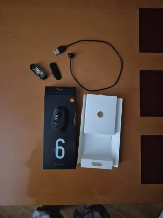 Pulsera de actividad Xiaomi Mi Smart Band 6 en color negro. Incluye su caja original y accesorios es para piezas o puedes poner la pantalla nueva y ya funcionaria. - Pulsera de actividad. - Cable de carga USB. - Manual de instrucciones.