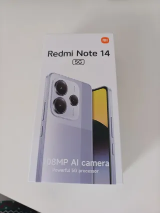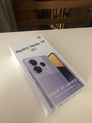 Teléfono móvil Redmi Note 14 5G precintadocon acabado en color morado y gran capacidad de almacenamiento. Entrega en Lleida📦📦 - 256GB de almacenamiento interno. - 8GB de RAM +4GB expansibles virtuales - 120Hz de pantalla y 6,67” AMOLED - Conectividad 5G +NFC+Dual SIM - Cámara principal de 108MP con IA.