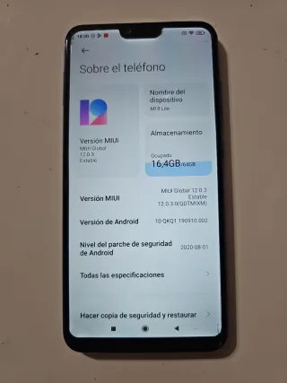 Teléfono móvil Xiaomi Mi 8 Lite con 64GB+16GB de almacenamiento. - Modelo: Mi 8 Lite - Almacenamiento: 64GB+16GB - Ram 4gb - Procesador Octa-core Max 2.2GHz - Versión MIUI: 12.0.3 Estable - Versión de Android: 10 QKQ1.190910.002