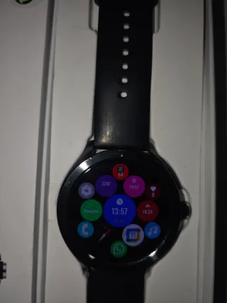 Reloj inteligente Xiaomi Redmi Watch 4 en color negro. Diseño moderno y ligero. Con su caja y cargador. Una vez conectado al teléfono puedes realizar llamadas a través del reloj o capturar fotos. - Pantalla a color. - Correa de tela. - Cierre de velcro.
