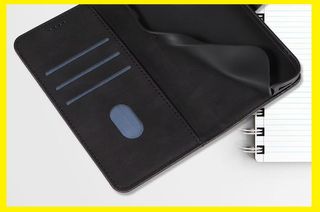 Funda tipo libro para Xiaomi Redmi 10 5G en color negro. Protege tu teléfono con estilo. - Material: Piel sintética. - Cierre magnético. - Ranuras para tarjetas y compartimento para billetes. - Función de soporte. - Incluye correa de muñeca.