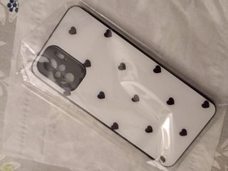 funda para móvil Xiaomi redmi note 10s nueva sin estrenar. Es de cristal por atrás con corazones negros