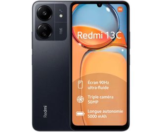 Teléfono móvil Xiaomi Redmi 13C en color negro. Cuenta con una pantalla fluida y una cámara versátil. - 6GB RAM, 128GB ROM. - Pantalla de 90Hz ultra-fluida. - Triple cámara de 50MP. - Batería de larga duración de 5000 mAh.