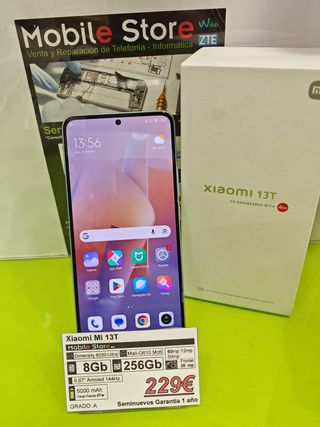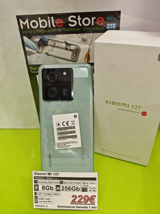 Xiaomi Mi 13T de 8Gb de ram y 256GB de almacenamiento. Se encuentra en perfecto estado y cuenta con garantía de 1 año. -Procesador Dimensity 8200-Ultra -Pantalla AMOLED 6.67" a 144Hz -Batería 5000 mAh, carga rápida de 67W -Cámara principal 50MP + 12MP + 50MP -Cámara frontal 20MP Todos nuestros artículos de segunda mano han sido testeados debidamente para comprobar su correcto funcionamiento. Damos 1 año de garantía en artículos usados y 3 años en artículos nuevos. Quieres verlos? Pásate por alguna de nuestras tiendas: MOBILE STORE MALAGA Avda. de la Aurora, 19 Calle Armengual de la Mota, 10 MALAGA Teléfono (Whatsapp): 627 119 234