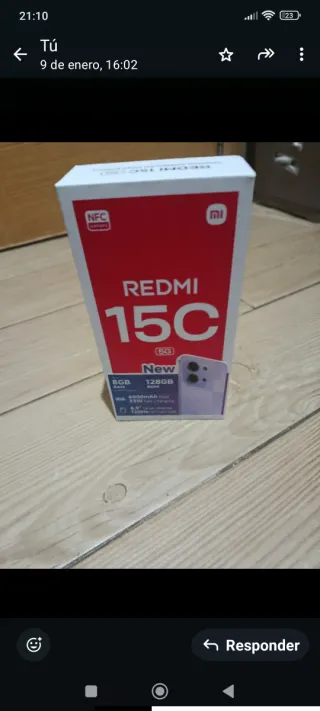 Teléfono móvil Xiaomi Redmi 15C, completamente nuevo y precintado. - Pantalla grande de 6.9 con 120Hz de tasa de refresco. - Batería de 6000mAh (typ) con carga rápida de 33W. - 8GB de RAM (ampliable 4+4GB). - 128GB de almacenamiento ROM. - Compatible con NFC. Entregó en mano
