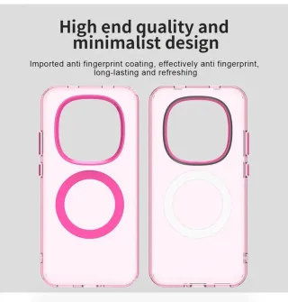 Funda protectora para Xiaomi Redmi Note 15 Pro 5G con diseño magnético y acabado en color rosa. - Material transparente con detalles en rosa. - Incorpora un anillo magnético en la parte trasera.
