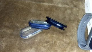 Xiaomi Smart Band 9 Azul Ártico. Lo compré en marzo de 2025, por lo que aún tiene garantía. Incluye caja y cargador originales. Usado de marzo a septiembre. Incluye varios accesorios: - Fundas protectoras de la pantalla (la negra es la única que ha sido usada, la plateada y la azul están sin estrenar) - Correa azul (la original, está sin usar) - Correa gris (la que tiene puesta ahora) - Correa metálica negra (usada una vez) - Correa metálica plateada (sin estrenar)