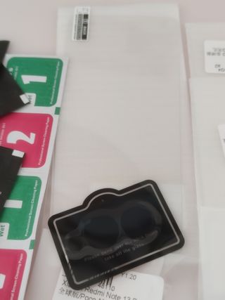 3 protectores de pantalla+ 2 protectores de cámaras traseras para Xiaomi redminote 13 pro 4 G. Nuevos, incluye líquido de limpieza y gamuzas para colocarlos. Están nuevos.