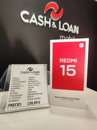 Teléfono móvil Xiaomi Redmi 15 con 256gb, color GRIS, NUEVO sin uso alguno. Garantía oficial Xiaomi. CASH LOAN MOBILE Tienda de telefonía nueva, segunda mano y reacondicionada de confianza en Avda. Constitución 53, Torrejón de Ardoz, Madrid.