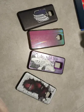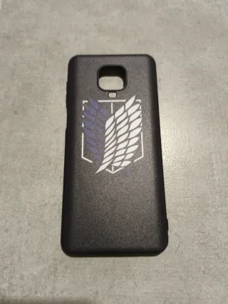 Variedad de fundas para Xiaomi Redmi 9S con diseños. - Funda negra con logo de Attack on Titan. 5 euros - Funda holográfica. 3 euros - Funda con diseño de Satoru Gojo (Jujutsu Kaisen). 4 euros - Funda con diseño de titán. 6 euros