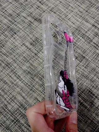 Funda transparente con diseño de Mafalda. - Protege la cámar. - Diseño divertido y llamativo. - Material flexible. - Reforzado en las esquinas.