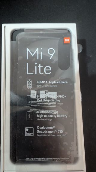 Teléfono móvil Xiaomi Mi 9 Lite con 128GB de almacenamiento. La pantalla se puso en verde y luego no enciendo más, del resto el teléfono está en muy buen estado, la pantalla tiene un picotazo abajo a la derecha. La parte trasera está en perfecto estado. Entrego 2 fundas y 5 protectores de cristal templado. - Pantalla Dot Drop. - Cámara triple AI. - Batería de alta capacidad.