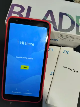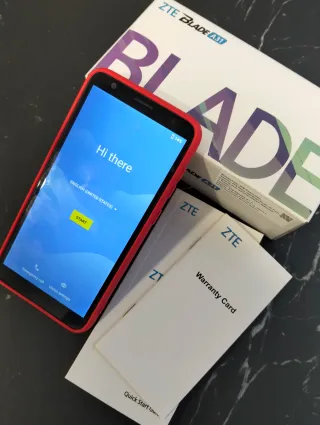 Teléfono móvil ZTE Blade A31 en color negro. Nuevo, nunca se ha estrenado. Incluye caja y manuales. Se regala funda roja. - Caja original. - Tarjeta de garantía. - Guía de inicio rápido.