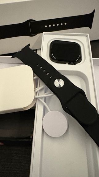 Reloj inteligente con un diseño moderno y elegante. - Correa de silicona. - Cargador inalámbrico incluido. - Caja original.