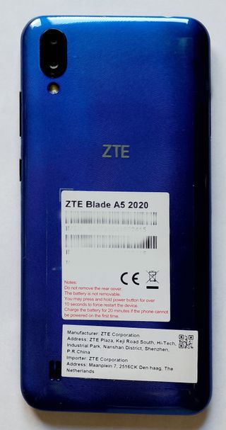 Teléfono móvil ZTE Blade A5 2020. Color Azul con funda incluida. - Pantalla de 6.09 pulgadas. - Cámara trasera de 13 MP. - Cámara frontal de 5 MP. - Batería de 3200 mAh.