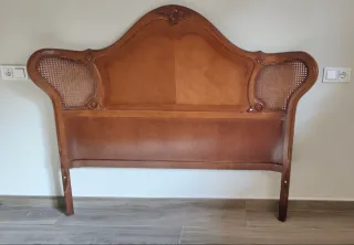 Cabezal cama 135cm madera y ratán