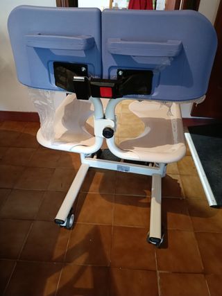 Tela anti manchas chenilla. Tres plazas distribuidas en dos módulos relax con motor.