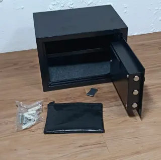 ¡Siguenos en nuestro IG @elmercadocircular para ver todos los productos que nos van llegando! Nueva. Caja fuerte doméstica ignífuga de 42 L, ideal para documentos, dinero, joyas u objetos de valor. Fabricada en acero resistente con puerta de 5 mm. Incluye estante extraibley bolsillo ignífugo para documentos. Apertura mediante código digital, laves de emergencia o batería externa. Sistema anti-intrusión con bloqueo tras intentos fallidos. Preparada para anclar a pared suelo. Incluye accesorios e instrucciones. D0090