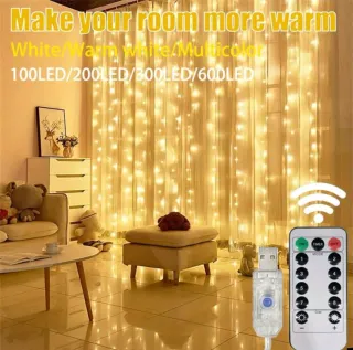 Añade un toque mágico a tu hogar con esta cortina de luces LED. Perfecta para crear ambiente. - Incluye mando a distancia para controlar las luces. - Diseño delicado y elegante.