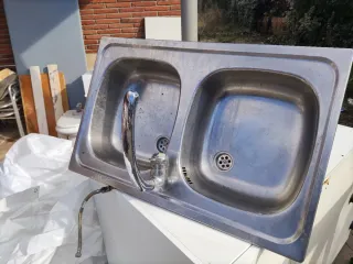 Fregadero doble con grifo